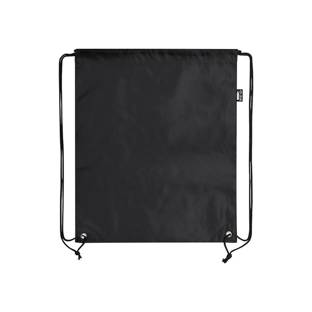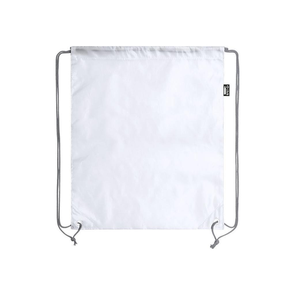 Gymbag de cuerdas en suave poliéster RPET, con cuerdas autocierre, esquinas reforzadas y resistentes argollas metálicas. Distintivo RPET en etiqueta lateral (color blanco especialmente fabricado para impresión en sublimación).