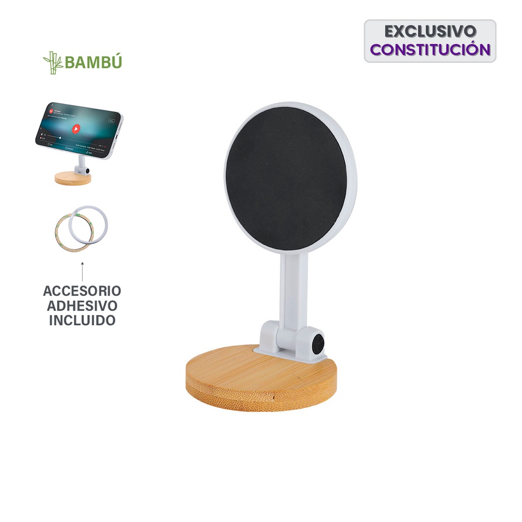 Soporte plegable para smartphones. Con fijación magnética, MagSafe y posición ajustable para mayor comodidad. Incluye anillo metálico adhesivo. Magnético. Plegable. Altura Regulable