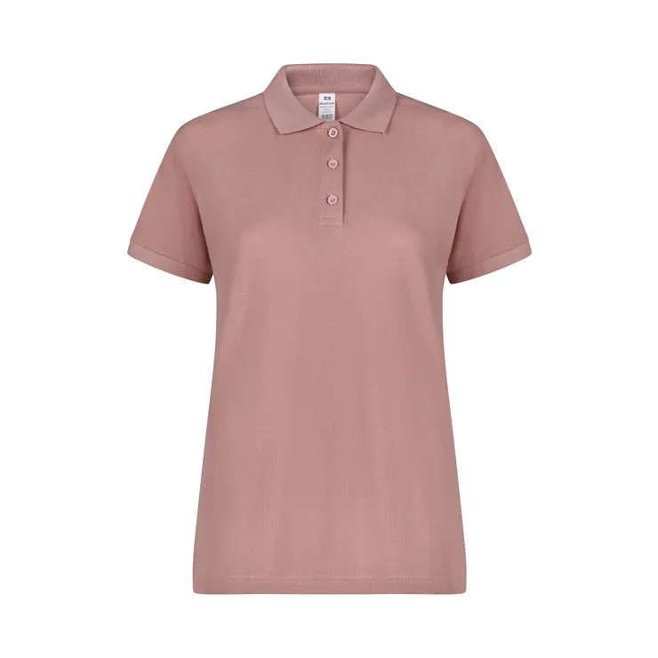 Polo para MUJER manga corta. 100% Algodón RingSpun preencogido. 210 g/m². Placket de 3 botones con cubrecosturas reforzado en el interior del cuello para evitar deformación Canalé 1x1 en cuello y mangas con puño, costuras laterales con aberturas inferiores Mangas más cortas y ajustadas Slim fit.