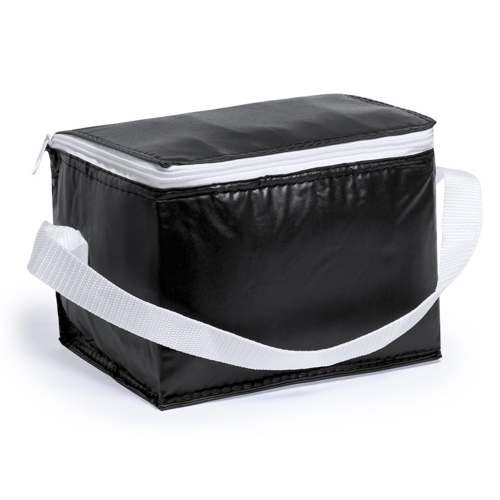 Lonchera fabricada en resistente PVC. Con compartimento de 3,2L de capacidad, cierre de zíper y con cinta bandolera ajustable.